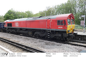 | 66084 | 28/04/2022 | Hither Green | 7U71 13:27 Cliffe Brett Marine to Stewarts Lane Days | DB red | Thomas Young | Approved, auto/admin |