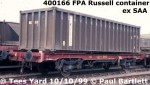 400193 was one of 192 SAAs converted into FPA Conflats for coal traffic. Seen with a Russell container at Aberdeen in 1988.