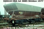While the HAA design fulfilled the role of delivering coal to power stations, an updated design was also required for other coal traffics, to replace the large fleet of unfitted and vacuum-braked minerals and hoppers. This appeared in 1975 when the prototype 32.5 ton HBA (360000) was built at Shildon Works. Fitted with manually operated discharge doors, this type was quite different from the HAA, not least in that the hopper body was painted, initially in Bauxite.