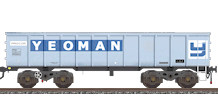 The second batch of 114 wagons was built from 1972 at British Steel's own Redpath Dorman and Long works in Middlesbrough. Mounted on BSC Axle Motion bogies, these wagons looked quite different, with a beefed-up body, heavier ribs (including horizontal ones on the wagon ends) and no visible solebar. The slight taper of the bodysides on the original batch was retained. This batch entered service between Redcar and Consett steel works but was destined to last less than 10 years. Consett closed in 1981 and the wagons were sold to wagon-hirer Procor. The design was suitable for aggregates traffic and the wagons were overhauled and transferred to the South-East for use by roadstone companies. ARC took 50 which were renumbered PR26801-26850. The remainder were hired to Yeoman and retained their original numbers albeit with PR prefixes. Their use was in block formations from quarries at Merehead, Whatley and Tytherington to depots in London and the home counties. The Yeoman service was for a time the heaviest regular freight train in the UK, 43 of the wagons being hauled by a pair of class-56 diesels from Merehead to Acton where the train was split. The liveries (originally grey/orange like the Scunthorpe batch) were changed to ARC mustard or Yeoman grey.