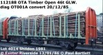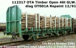 Design/Diagram: OT001A Timber Carrying Wagon Design/Diagram: OT001C 46 tonne GLW Timber Carrying Wagon Design/Diagram: OT002A 41t GLW Timber Wagon Design/Diagram: OT002E 41t GLW Timber Wagon Design/Diagram: OT002F 41t GLW Timber Wagon TOPS Class/Code: OTA Timber Wagon |