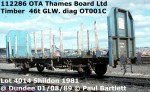 An initial batch of 50 wagons was modified at Cardiff Cathays from mid-1985, followed by further batches to make a total of 126 in use by March 1986. Two designs of wagon end were featured, the first batch having square topped extensions, while the remainder had taller extensions with angled corners to fit the loading gauge. The square section side stanchions were removable (and featured small hoops in their tops to facilitate this) and fitted into pockets on the edge of the floor. The early wagons had 11 pockets on each side and were to TOPS code OTA-A and design code OT001A, while the last 25 (intended for use by Thames Board Mills) had 9 pockets and were OTA-C, design code OT001C. On both types, several strap reels were fitted to the edge of the floor between the stanchions. When carrying logs, the nylon straps were used to secure the load.