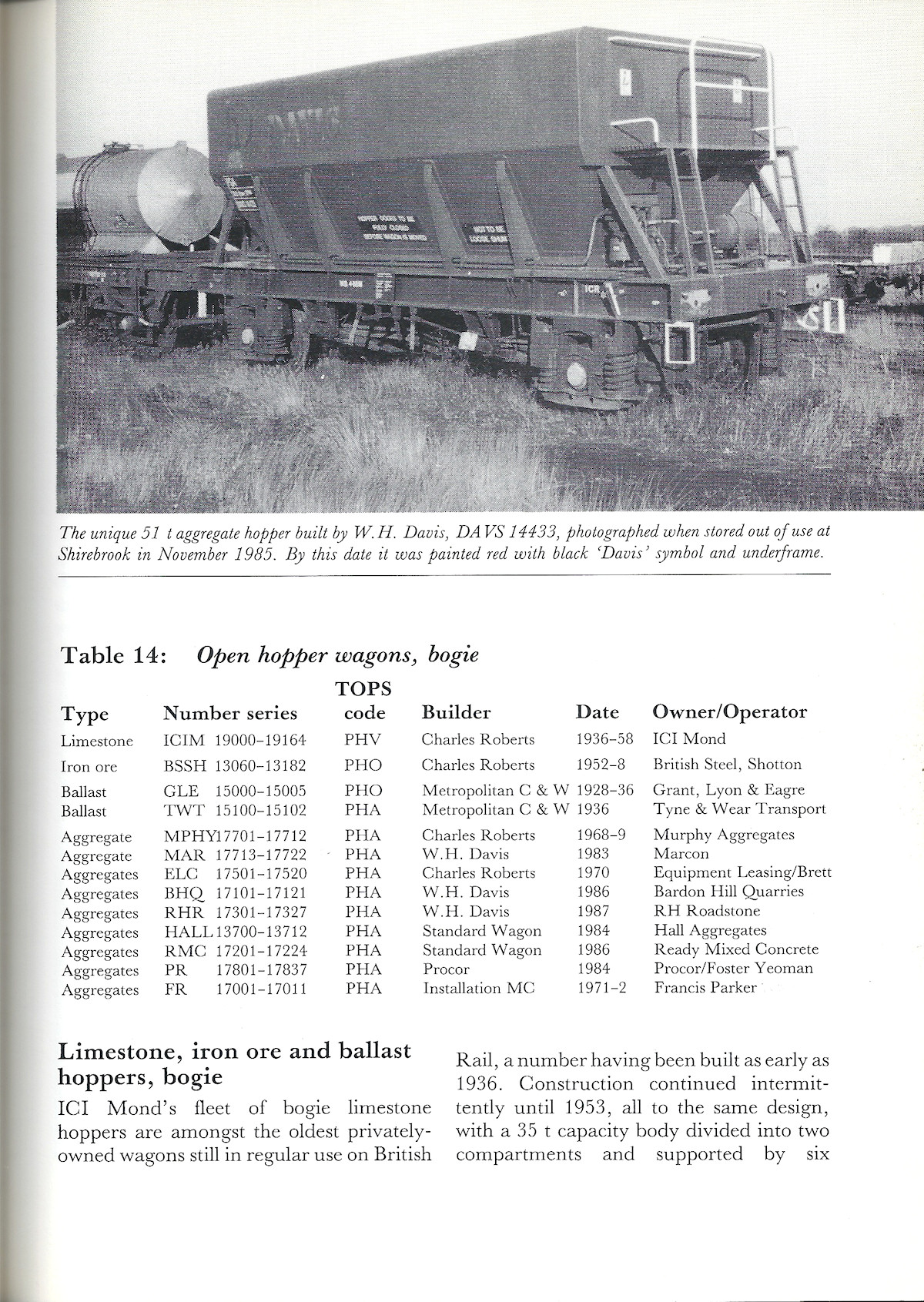 Typical page showing table giving overview of a group of wagons, followed by narrative text. |