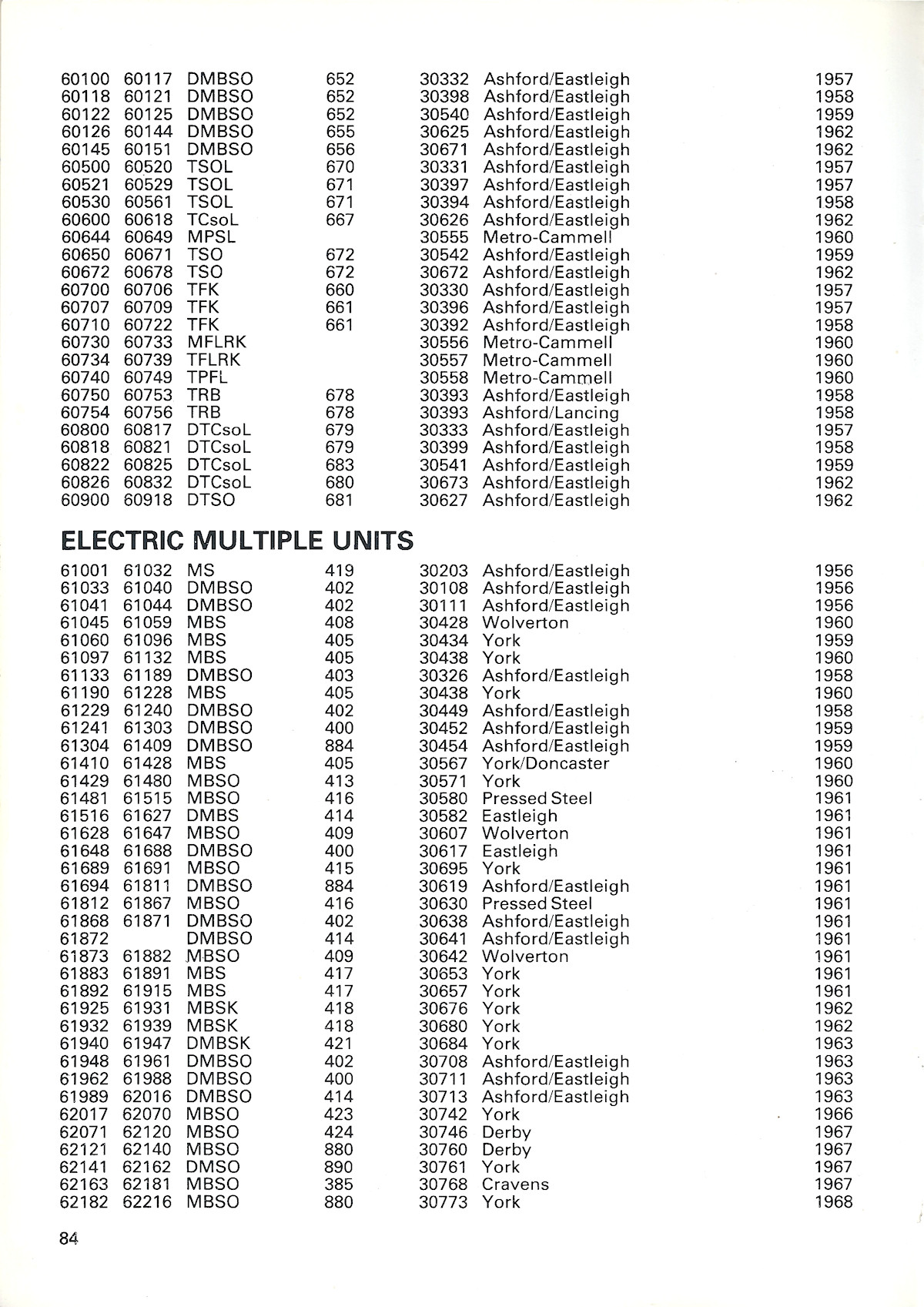 The layout was still the same, except that multiple-unit vehicles were now integrated, and build details were not shown for former BR-built coaches.