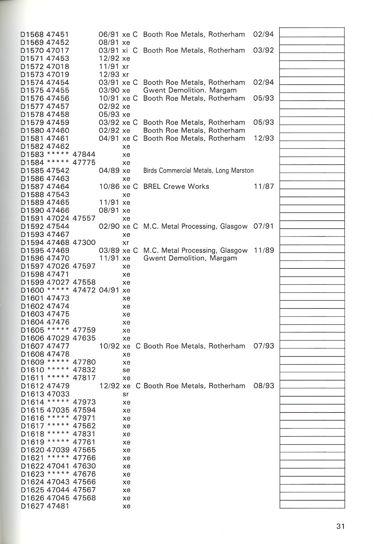 Three columns are provided to show renumbering information. Locos that had more than three numbers have asterisks shown instead of the intermediate numbers and you need to refer to an appendix to see the full history.
