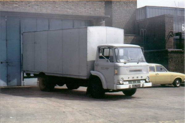 | Details: A picture taken in 1975 shows 1577F (AML754H), a Ford D550 5-ton Box Truck with Tail-Lift parked at Hainault Depot. The vehicle was allocated to Parsons Green and was apparently collecting a load of chairs. | ||||