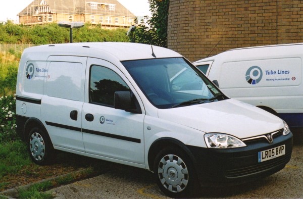 | Details: This smart Vauxhall Combo van seen near Acton Museum Depot in July 2005 carried neither a fleetnumber nor the normal blue skirt, although it had had Tube Lines logos applied. Also notable is the offside sliding cargo door, it being more common to have one just on the nearside, or not at all. The Ford Escort van in the background is roughly the same size but, being car-derived, was not able to be fitted with side cargo doors. This may have been part of the reason for developing the Transit Connect design. | ||||