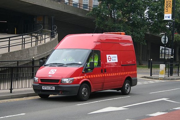 | Details: 5695F was a one-off Ford Transit van leased for use by LBSL in October 2004, following earlier batches of eight and twelve similar vehicles. It was based for much of the time at Stratford Bus Station, outside which it was photographed on 25th June 2005. | |||
