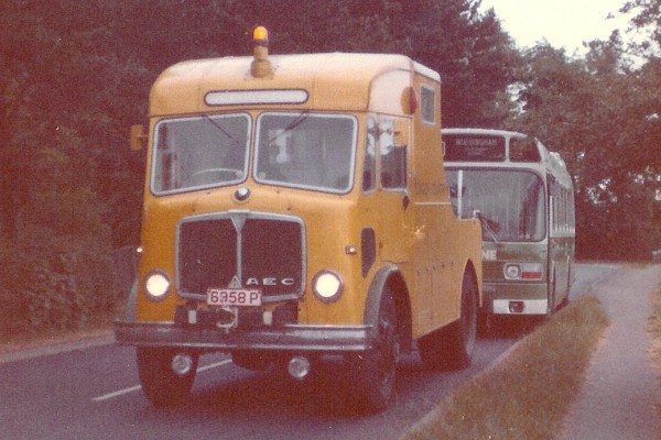 | Details: Les's collection of SV pictures includes a number of previously unseen LCBS vehicles, such as this view of AEC Matador Breakdown Tender 582J. Taken in Woldingham in the late 1970s, the Reigate-based vehicle was towing a recalcitrant Green Line Leyland National. | |||
