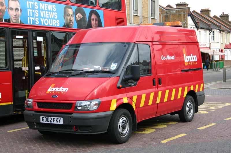 Details: London General took two Ford Transit T280 vans in 2002 for use as engineering run-abouts. GD02FKY was based at Merton and had not been photographed until Colin caught it at Tooting Broadway on 22nd March 2006. The smart livery includes the logo of London General's owner, Go-Ahead.