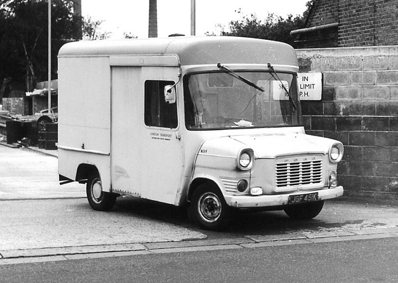| Details: The parcels van version of the Ford Transit was particularly rare as a service vehicle, only five delivered in 1971 being known of. Of these, 1631F was caught leaving its home base of Chiswick Works on 13th June 1978. Note that it still carries the green roof variant of the grey livery that was used in the early 1970s. | ||||