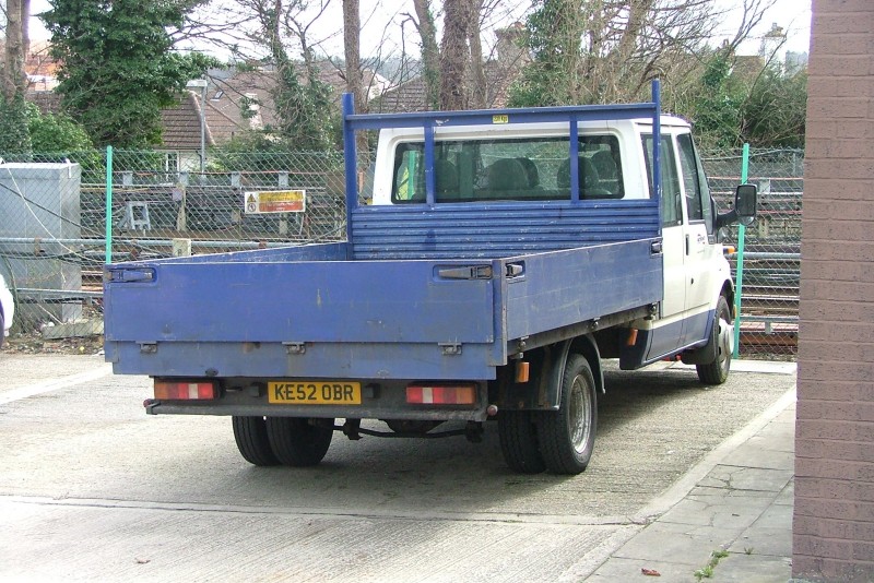 | Details: This Ford Transit dropside seen at Rickmansworth Station on 29th March 2006 represents something of a numbering anomaly. New in September 2002, it was numbered 5149F, about 200 lower than other vehicles delivered at the same time. Was this to backfill an unused number, or was it an error? As can be seen, a crew-cab is fitted but no tail-lift. | ||||