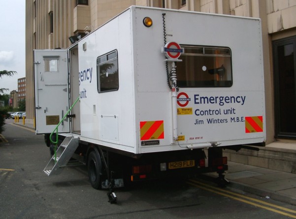 | Details: Parked outside Ashfield House at Lillie Bridge, the Emergency Control Unit 2488M (H219FLB) is set-up as if for operation. Points to note are the access door with detachable steps, rear body legs in the lowered position, and the rear-mounted telescopic sign. The latter may double as an aerial, or as a rendezvous point during emergencies. | |||||
