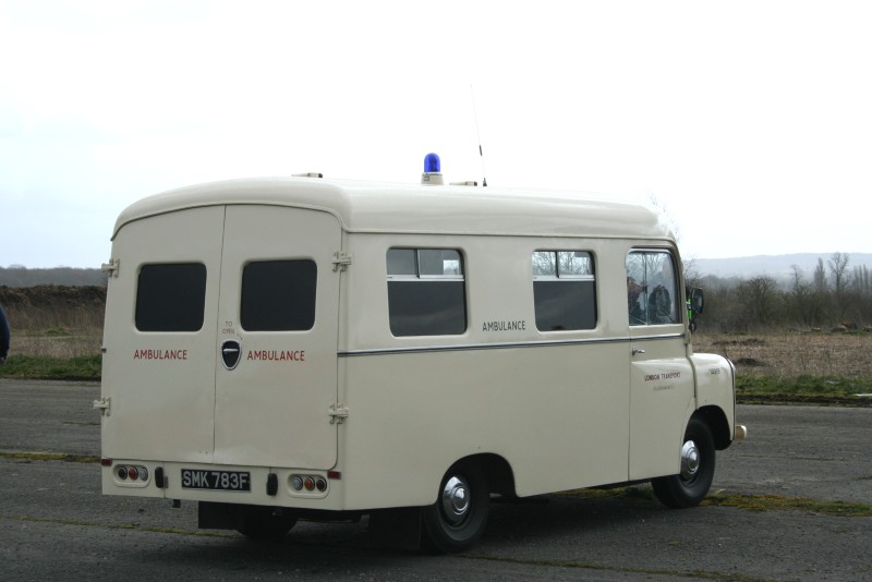 | Details: With the Surrey countryside as a backdrop, preserved Bedford CALV ambulance 1492B was photographed at Wisley during the Cobham open day on 2nd April 2006. The nearside is identical other than the application of legal lettering for London Transport. | |||