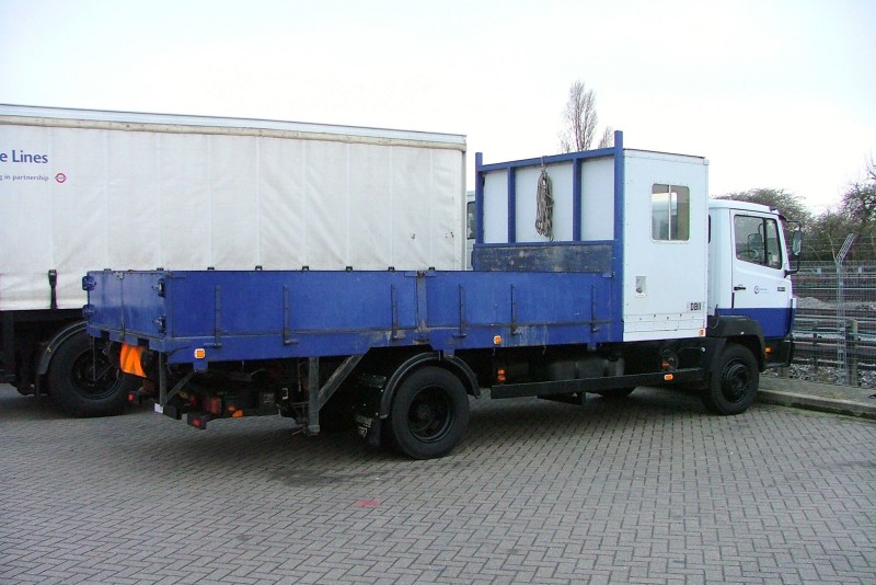 | Details: Soon to be replaced, possibly by some MAN trucks, this is Mercedes-Benz 1114 demountable truck 2540M at Acton Works on 22nd February 2006. It was carrying Locomotors dropside body DB11 which has its own crew cab. Note that the body has a fuel filler point (for a heater perhaps?) and also has an electrical connection to the lorry cab. The mis-alignment of what otherwise looks like a wheelarch has been mentioned before. With permission of Tube Lines | |||||