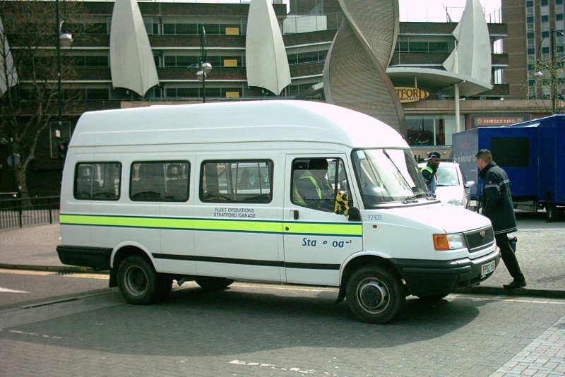 | Details: One of four LDV Convoy minibuses used by Stagecoach London for crew ferry duties from Stratford garage, 92403 (FP02YHS) was seen at the bus station on 18th April 2006. This appears to be the normal destination for these vehicles, Ford cars being used for other runs to places such as Hackney. | ||||