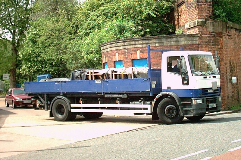 | Details: I was very glad to see this picture of Ford-Iveco Super Cargo demountable 2554F leaving Acton Works on 25th May 2006 as it confirmed some information about the bodies carried. Feltham dropside DB22 is evidently longer than the other dropside bodies, and suggests that DB22-24 are indeed limited to being used with these larger Cargo lorries. Other demountable dropsides have just two doors per side. Non-demountable dropside lorries 2522-2524F are very similar to this combination, the bodies having three doors and the cabs three steps. However, they can be recognised by not having the support legs beneath the rear of the body. | |||||