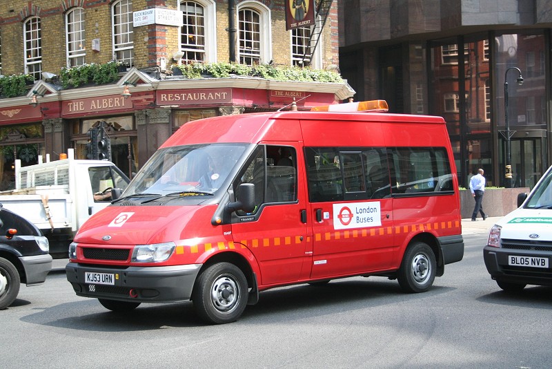 | Details: A vehicle that has evaded our collective cameras for a while is LBSL Passenger Data Ford Transit minibus 5540F. Colin managed to catch it on Victoria Street on 7th June 2006. Note the curious mid positioning of the light-bar, and also the small yellow sticker on the bumper. This shows a 4, and possibly relates to passenger survey jobs. An identical sticker also appeared on earlier vehicle 4524F. | |||
