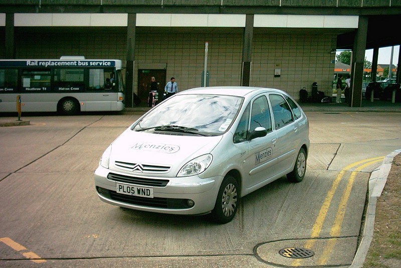 | Details: Menzies is a name that may not be familiar to many enthusiasts (except as the place you used to buy your magazines!) However, for the past few years they have operated a fleet of rigid and articulated Scania buses on two distinct but related services at Heathrow. The first is for construction staff working on Terminal 5, while a public service is run to replace the tube service to Terminal 4 (as seen in the background here). The first service vehicles reported working for them were a pair of Citroen Xsara (not Renault Megane) Picasso cars, one of which was seen at Hatton Cross Station on 28th June 2006. | ||||