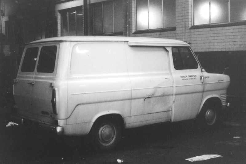 | Details: The first Ford Transits were bought by LT in 1966, but this batch was transferred to LCBS in 1970. Larger numbers of Transits followed from 1969, including 1543F, new in November. The location of this shot is unknown, although it could be New Cross, where 1543F was initially allocated. This view has been included as it shows the rear of what was a very common type. | |||
