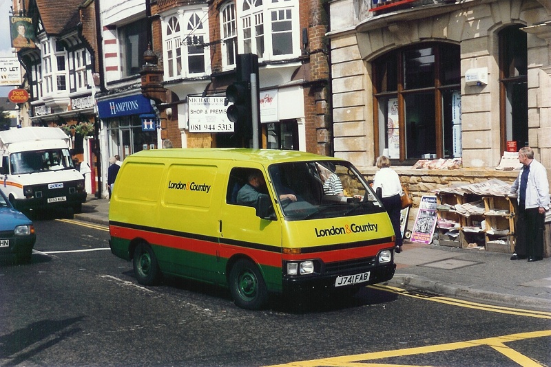 | Details: Many bus companies have had liveries designed by Ray Stenning's Best Impressions, and they certainly tend to stand out as being smarter than most. London & Country was an early example and the colours are seen here on Vauxhall Midi van J741FAB in Epsom on 2nd June 1993. | |||