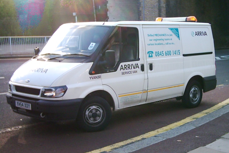 | Details: Back in the pre-Arriva, pre-Cowie days of the British Bus group, service vehicles of London and Country, Kentish Bus and County Bus started to acquire fleetnumbers prefixed with a Y. For example, the YFB class was for ferry buses. This practice appears to have continued at least in part, hence the appearance of this van with the curious number of YVAN30. Operated by Arriva Kent Thameside, YH54XXY was a Ford Transit van used in the engineering support role and was seen here attending a broken-down Dart on route 126 at Eltham Station on 13th July 2006. | |||
