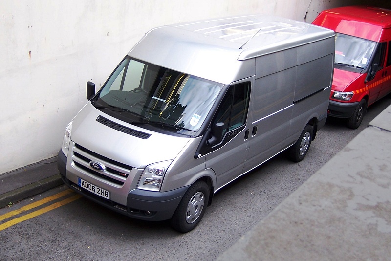 | Details: Also found at Victoria Coach Station on 25th August 2006 was the first bodied example of the latest style Ford Transit seen. Although carrying no signs or lettering, this was presumably being used by LBSL, perhaps on hire, or on loan to evaluate the new type. As can be seen, the changes are restricted to the bonnet and headlamps, and the shape of the trim under the side window. Parked behind is one of the Transit minibuses used by the Passenger Data team. | ||||