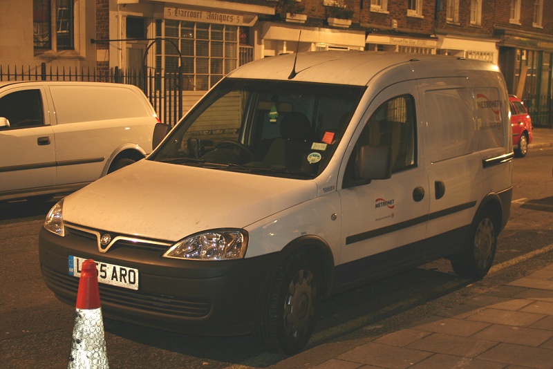 | Details: Parked on Harcourt Street near Griffith House on the night of 21st August 2006, this is Metronet Vauxhall Combo 5868V. As Damon commented later, he wished he had moved that police cone! | ||||