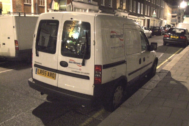 | Details: Although this van has already been illustrated, this view has been included as it shows the rear of a very common type. Vauxhall Combo van 5868V is used by Metronet and was found parked near Griffith House on the night of 6th September 2006. Compared to this view of similar 5448V, it will be noted that 5868V has an additional off-side cargo door, while the rear windows have the benefit of wipers. | ||||