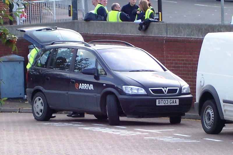 | Details: A newly reported crew ferry vehicle in the Arriva Kent Thameside fleet is black Vauxhall Zafira car BT03GAA. This apparently has the number CF1, and carries large Arriva logos on the bonnet and doors. It was found at Eltham Bus Station on 20th October 2006. | ||||