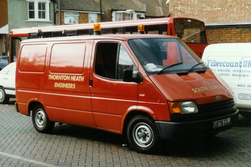 | Details: Typical of the special treatment often afforded to engineers vans based at bus garages, Ford Transit 3770F was seen outside its home of Thornton Heath on 1st September 1990. | ||||