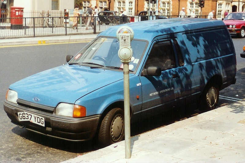 | Details: This fine portrait of a City of Westminster parking meter also includes a rather unusual service vehicle! Parked opposite Victoria Coach Station on 6th May 1990, Ford Escort van 3871F carries a livery not unlike that used by LUL at the time. However, the lettering shows the user as Network Operations LBL. Curiously, it was reportedly based subsequently at South Kensington and Whitechapel, neither of which were LBL locations. | |||