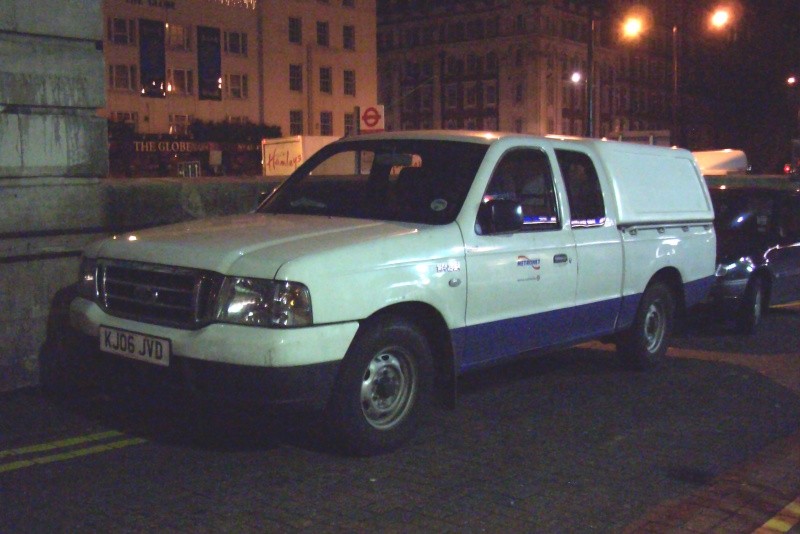| Details: I am quite proud of this picture as my little camera is not designed for night work! By resting on a fence, and by later bumping up the brightness and contrast, I was able to capture Ford Ranger 5953F parked on the forecourt of Baker Street Station in the early hours of December 6th 2006. This location used to be home to quite a number of service vehicles but they are now rarely seen here in daylight. | ||||