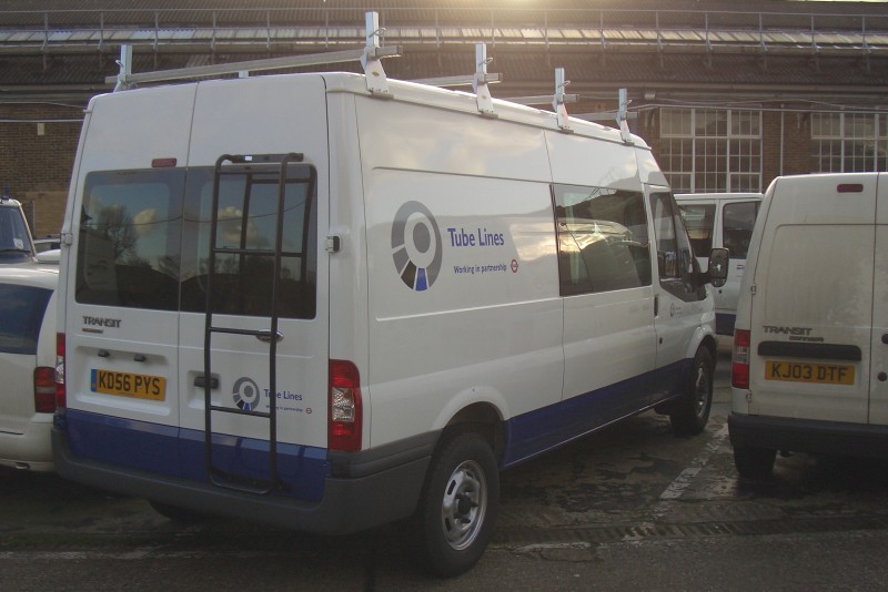 | Details: Another view taken in the van yard at Acton Works on 6th March 2007 shows the rear of Tube Lines Ford Transit crew van 6117F, then just 6 days old. The 2006 Ford Transit is barely distinguishable from the earlier model from behind, the only visible difference being that the model number is now located under the Transit badge on the back door. We are hoping to obtain permission to publish photos of some of the Metronet vehicles present soon. | ||||