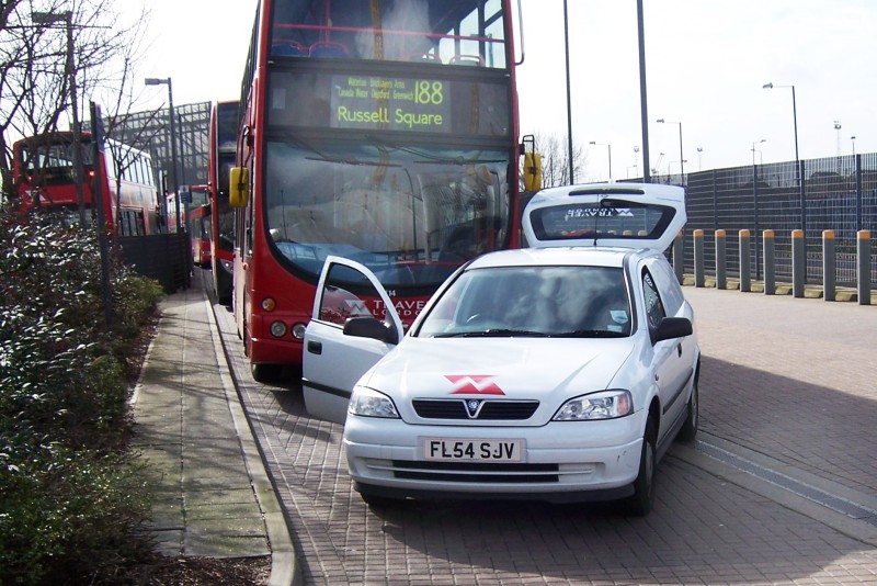 | Details: A newly reported addition to the Travel London support vehicle fleet in early 2007 was this Vauxhall Astra van seen at North Greenwich bus station on 6th March. The company name seems to only be carried in the rear window, although there is a logo (based on the interlocking WM logo of parent Travel West Midlands) on the front. | ||||