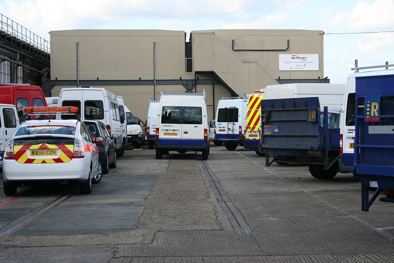 | Details: An overview of part of the van yard at Acton Works on 6th March 2007 shows a variety of service vehicles present. To the left is newly delivered Toyota Prius RA56CZN, destined for the TfL Streets fleet, while the van with the chevrons on the rear is mobile control unit 5727F, which unfortunately left before we could get some more photographs. The two dropside trucks on the left illustrate the change from solid to mesh-floored tail-lifts. | ||||||