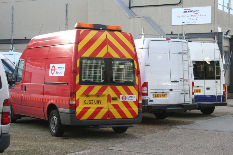 | Details: Another London Buses Transit van present at Acton Works on 6th March 2007 was 5584F, earlier based at Edgware. Parked alongside is 5735M, one of the rarely seen Mercedes-Benz Sprinter crew vans of Metronet, and Transit 5879F. | ||||||
