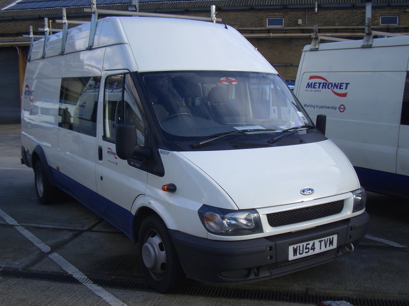 | Details: Although not readily apparent in this tight shot taken at Acton Works on 6th March 2007, 5657F is an example of the rarer 'Jumbo' Transit, similar to a long-wheelbase, high-roof van but with extended bodywork. Tell-tale signs include the flared rear wheelarch, bumper panels not wrapping around to the rear wheels, additional side marker lights, and 'stalked' marker lights near the front. Note also the odd positioning of the fleetnumber. | ||||