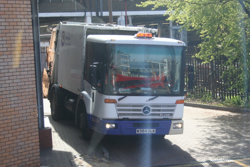 | Details: Dustcarts in bus stations 1: Mercedes-Benz Econic 2576M is the lone example of a twin-axle Econic in the fleet. On 6th April 2007 it was parked at Harrow Bus Station, and photographed from a passing bus. | ||||