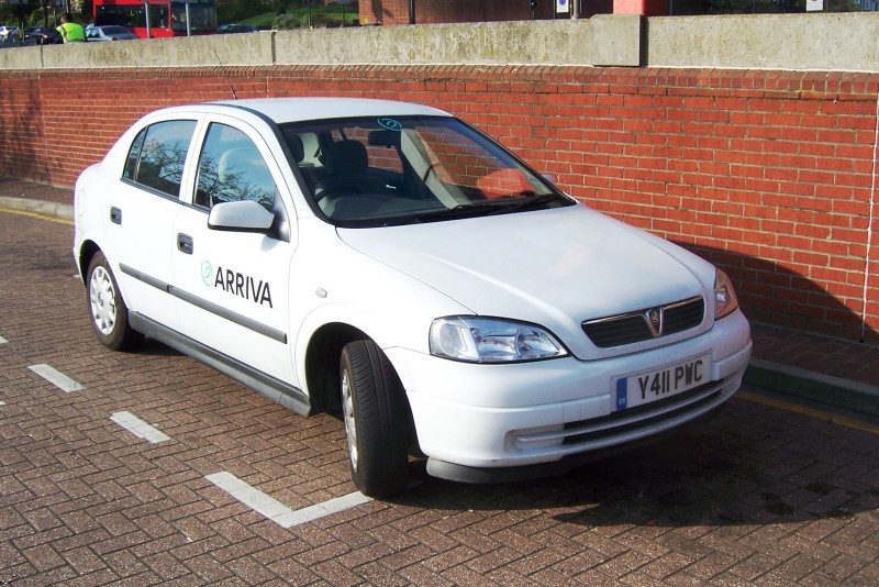 | Details: Arriva's CF-series of crew ferry vehicles covers both Arriva Kent Thameside at Dartford and the Arriva Southend depot at Grays. The fleetnumbers are carried discretely, often on the side windows (as seen here) but all have large Arriva logos and/or fleetnames. CF8 is a Vauxhall Astra hatchback, seen at Eltham Bus Station on 7th April 2007. | ||||