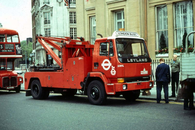 | Details: Leyland Freighter recovery truck 2391L was one of three tow trucks found parked at Trafalgar Square one day in the early 1980s. This was based at Camberwell garage, at the time part of the Selkent district. | |||