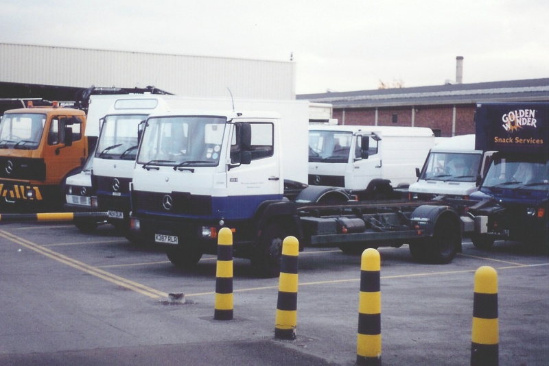 | Details: LUL service vehicles could often be found visiting the Mercedes-Benz dealership in Colindale, and this picture has been included as it shows the rare sight of a demountable truck without a body on. 2536M is the vehicle in question, while artic 2552M is parked just beyond. | |||