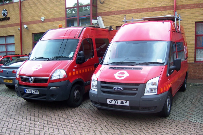 | Details: Two rather special vans were found by Ray at Trinity Way, Chingford on 29th May 2007. Vauxhall Movano 6026V with its roof-mounted cameras has been illustrated before, but Ford Transit 6271F was presumably brand new. It has a framework on the roof presumably to enable it to also carry cameras or other equipment. | |||||