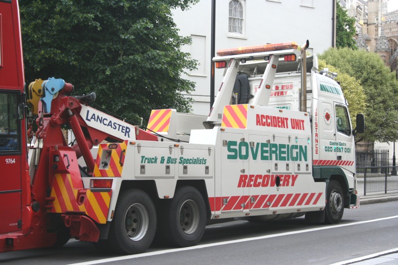 | Details: Travel London 9764 (more familiar to many as TA64) came to grief outside the Houses of Parliament on 17th June 2007, and was attended to by Sovereign Recovery N6SOV. As can be seen, this carries the name 'Lancaster' on the boom as well as on the front. | |||
