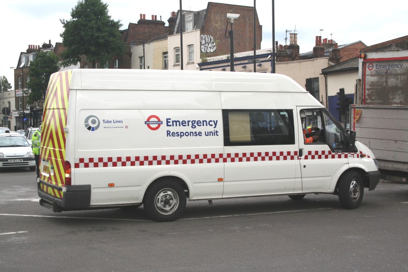| Details: Another view of ERU Ford Transit van 5862F at Mile End on 5th July 2007 accentuates the length of this 'jumbo' variant, and also shows the unusual fitting of an additional side window in the offside only. | |||