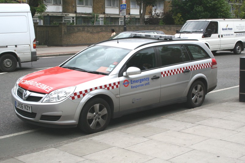| Details: LR06VZY has been illustrated here before, and is a Vauxhall Vectra estate car used by the Emergency Response unit. However, when it was attending the Mile End incident on 5th July, Kim noticed that it had been fitted with a new 'low-profile' roof-mounted light bar. Compare this with a view taken in 2006. | |||
