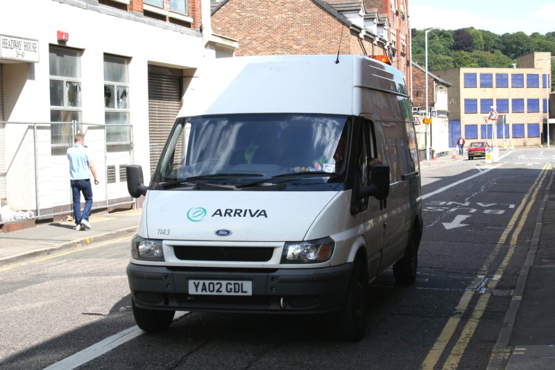 | Details: Arriva the Shires 1143 is a high-roof Ford Transit van seen in Luton on 31st July 2007. The vertical blue band towards the rear can just be made out, this being the standard livery on Arriva engineering vans (as seen on Arriva Tour MV5). Arriva the Shires was formerly Luton and District, itself formed from part of United Counties. It entered the London Bus scene through its acquisition of London Country North West. | |||