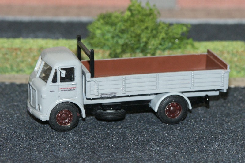 | Details: Some service vehicles can be modelled with little modifications, but as seen here, neat painting and transfer applications are key to producing a realistic model. Here's Les again: 1071Q is another Base Toys model. Once again the model was dismantled including the wheels and axles, as you can move the position of the front axle if need be. I made and fitted a headstock that was fitted to the body and a strip of plastistruct to raise the height of the tailboard. The model was repainted in the usual way, and transfers added when dry. Wing mirrors were added and the wheel centres painted to look like Red Oxide. | |||