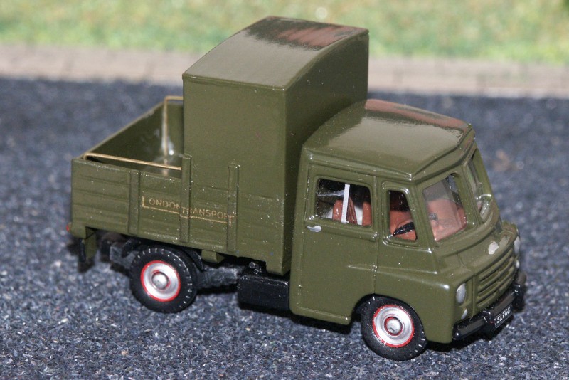 | Details: I feel rather cruel reproducing these photographers somewhat larger than the actual models, but this just serves to show the level of detail incorporated. Les writes: This started life as a Morris LD van made by Trackside models. Once again, dismantle the model by drilling the rivet in the base, taking care not to damage the base. Now comes the tricky bit. Cut the body in half, just behind the doors, using a razor saw. Next I cut out the base leaving the road springs in place along with the fuel tank. At this point I stuck a piece of plastic on top of the fuel tank to give it some depth with liquid plastic cement. I then cut a square of plasticard greater than the cab part of the body, and stuck the two together using Araldite, leaving about 1/8 inch proud on all four sides. When dry, I trimmed off the excess on the two sides and the top (roof), finishing off with a file. The bottom edge I trimmed until it allowed the cab to sit at right angles to the base, so that it sits neatly. The body is scratch built from plastistruct and brass wire for the handrails making a number of dry fits. Once I was satisfied the whole model fitted together well, I spray painted the cab and body in primer. The topcoat is BMC Tundra Green (which is the closest to Chiswick Green) supplied by Halfords. I then stuck the whole model together, cutting the glazing to fit into the new cab. The seats/steering wheel/dash, were also painted a shade of brown, picking out the steering wheel in black. When the whole unit is dry, add transfers and the model is complete. | |||