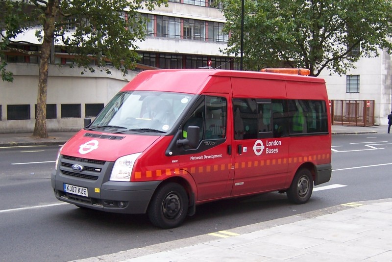 | Details: Although the main London Buses service vehicle fleet has diversified with Volkswagens, Vauxhalls and Mercedes-Benz vans, the Passenger Data fleet is wholly made up of Ford products. One of a pair of Transit minibuses delivered in March 2007 is 6067F, seen here on Buckingham Palace Road on 27th September. Note the repetition of part of the fleet number on the bumper. Similar 6063F also has the feature. | |||